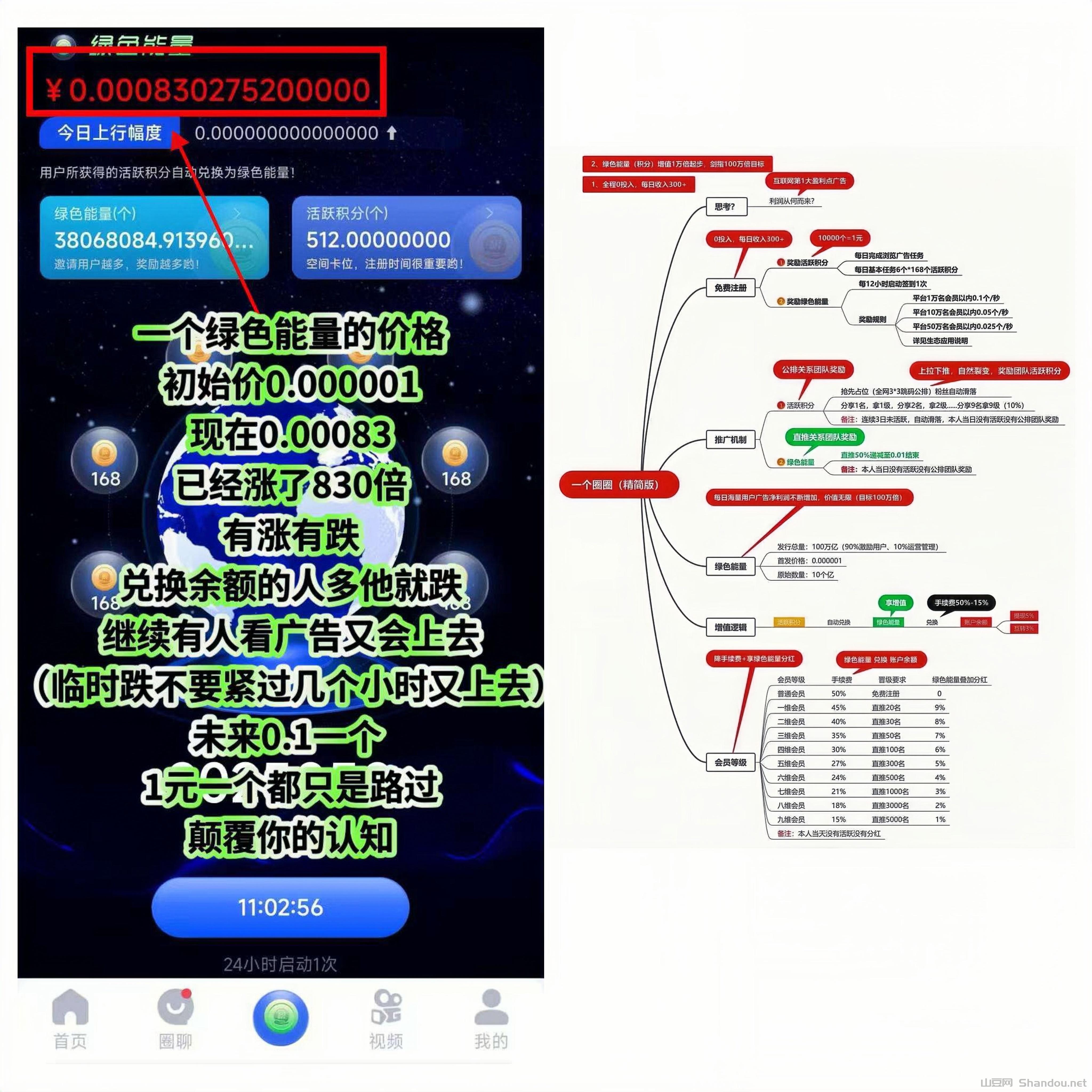如果你每天愿意用7分钟的时间,在一个圈圈上看7个小视频的广告,每一天收取700个绿色能量,绿色能量就是数字资产,可以兑换提现到支付宝,也可以增值!
