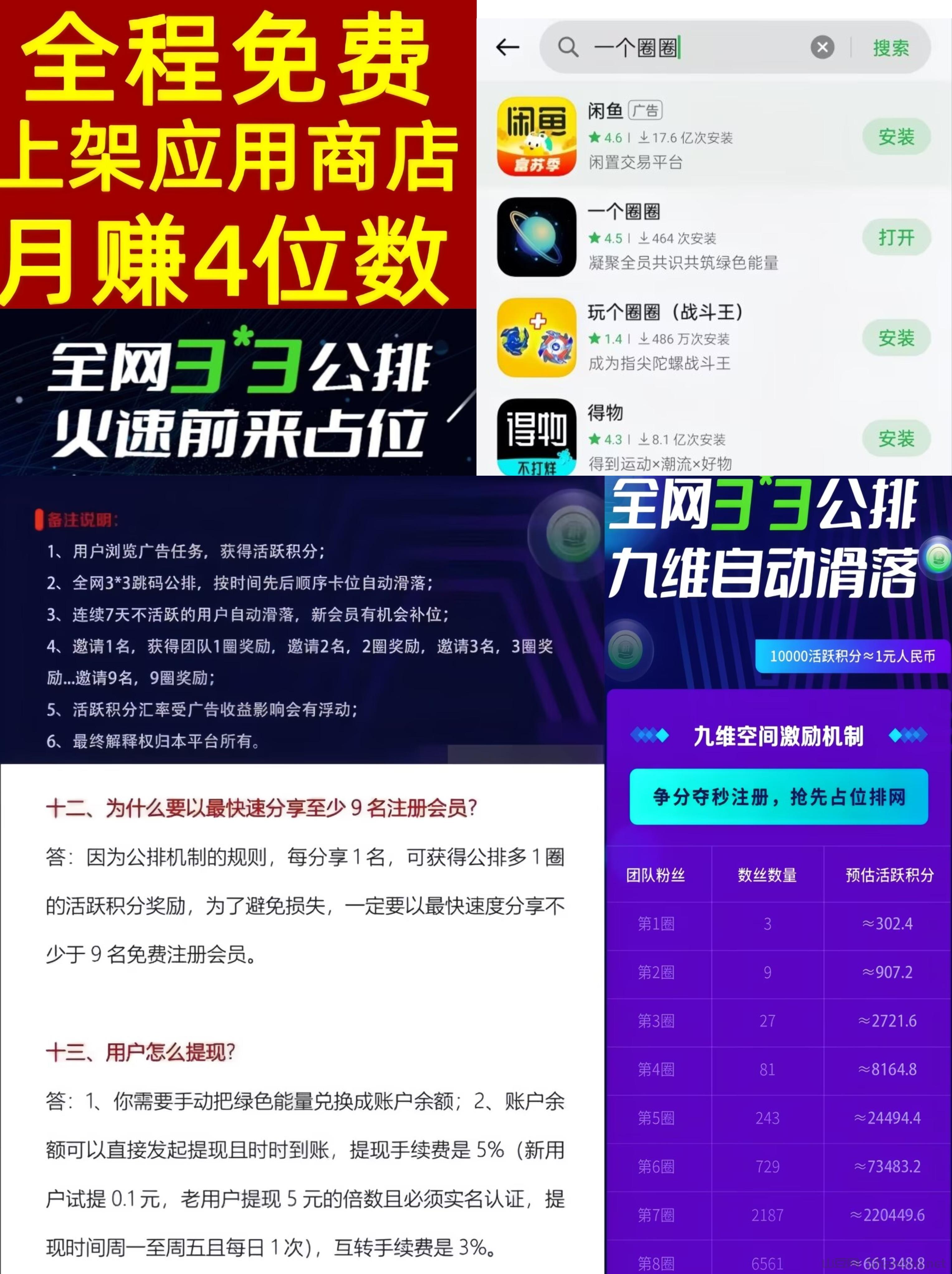一个圈圈:全程免费,全员免费,24小时赚钱!