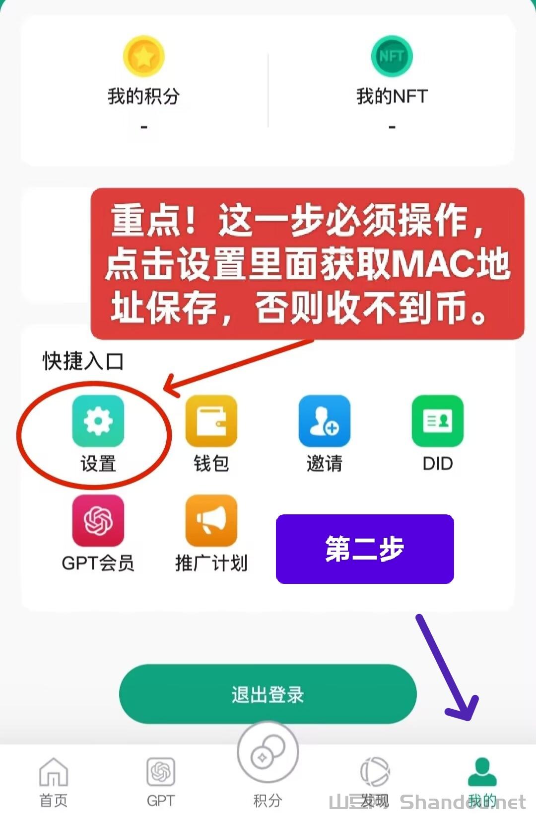 4.这一步必须操作,点击设置里面获取MAC地址保存,否则收不到币。