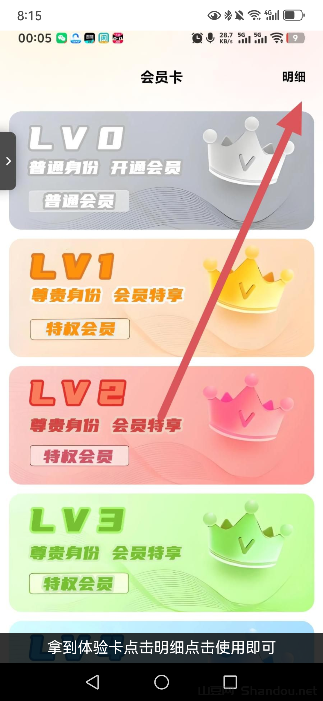 3.拿到体验卡点击明细点击使用即可