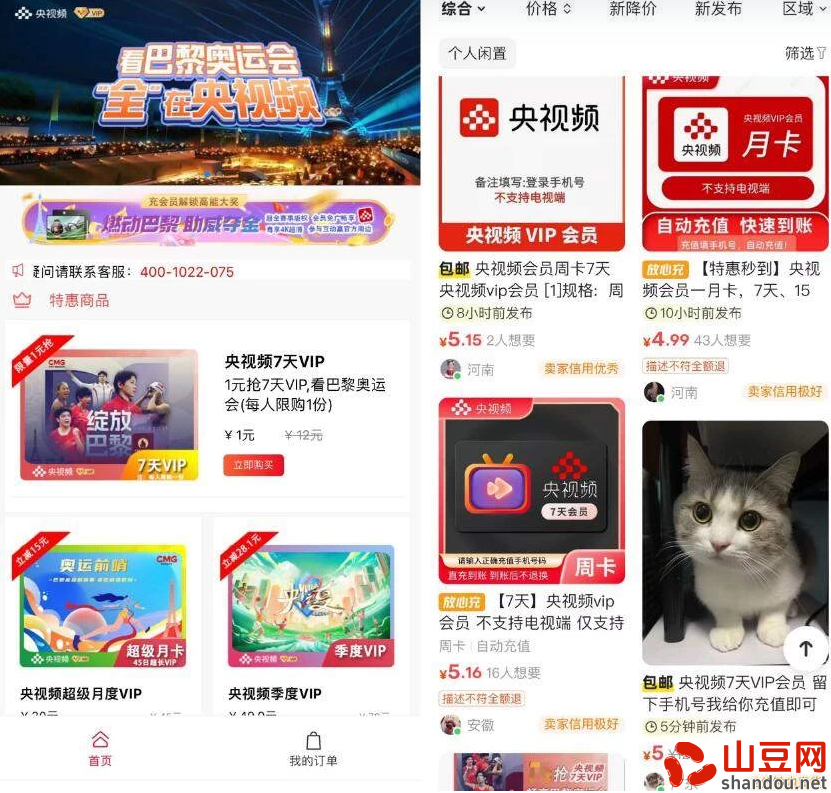 1元购买央视频7天会员,可以二手平台5元卖掉